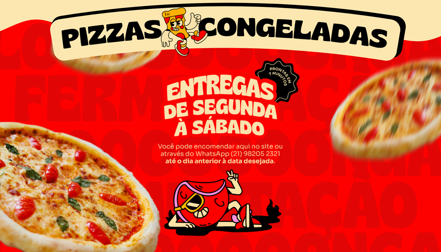 O item que faltava no seu congelador. Pizzas de 27 cm, pré-assadas, para serem finalizadas em 7 min no seu forno.